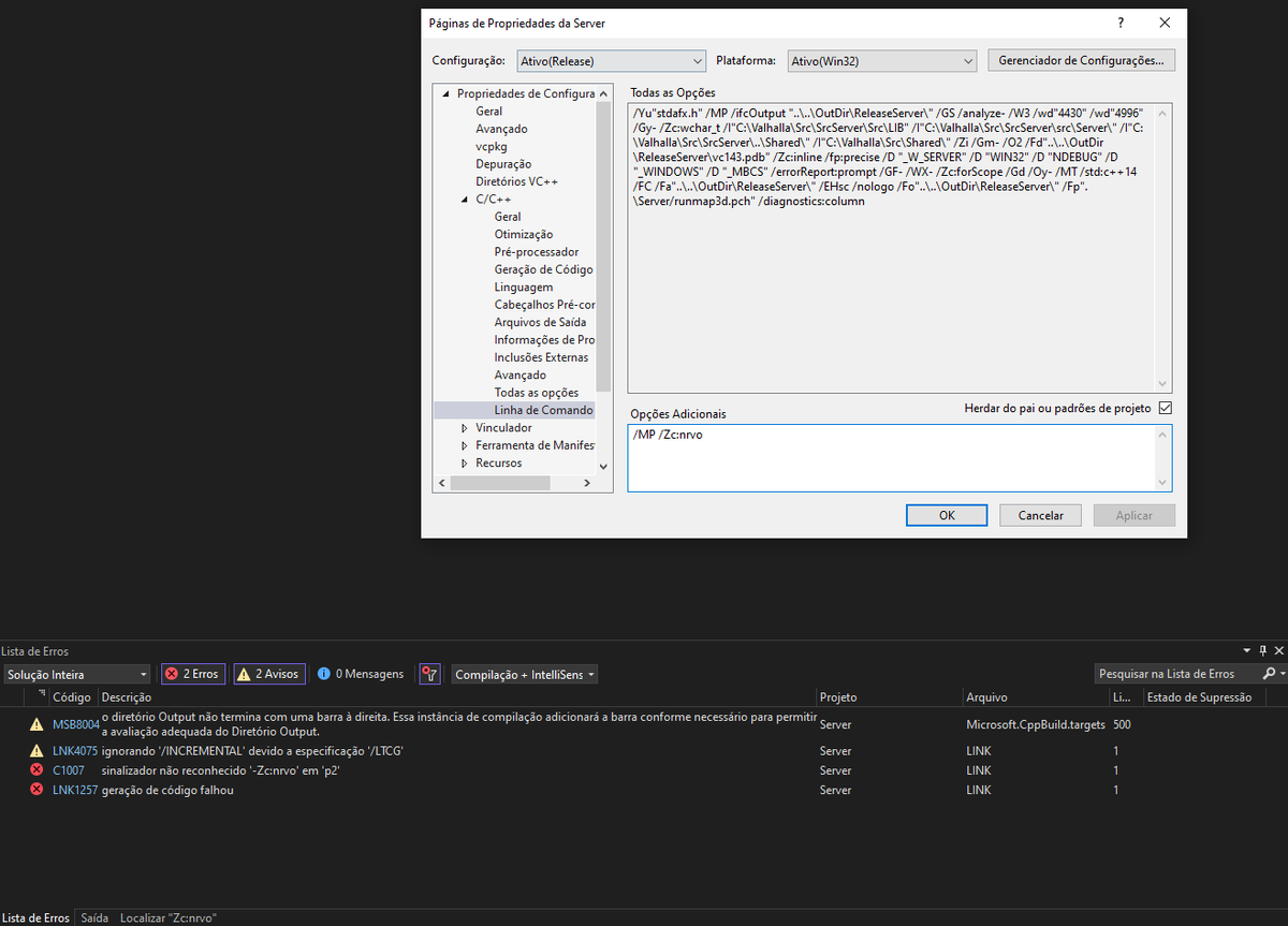 Já consegui compilar o Game.exe, mas, agora pra compilar o Server.exe estou tendo dificuldade ficando dando esse erro. - Compilar Server Valhalla